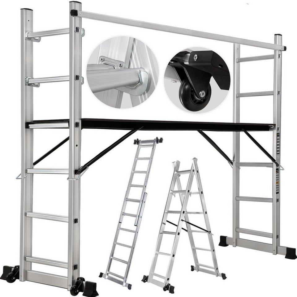 Craftfull CF-103A 4in1 Arbeitsgerüst, Aluminium Leiter mit 150 kg Traglast
